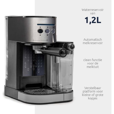 Met een waterreservoir van 1.5 liter hoef je niet constant bij te vullen. Het is als een grote watertank: je kunt meerdere kopjes zetten zonder onderbreking, ideaal als je gasten hebt of als je zelf meerdere kopjes per dag drinkt. En als je de machine een tijdje niet gebruikt, is het reservoir makkelijk te verwijderen en schoon te maken.